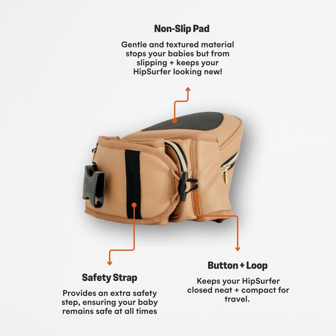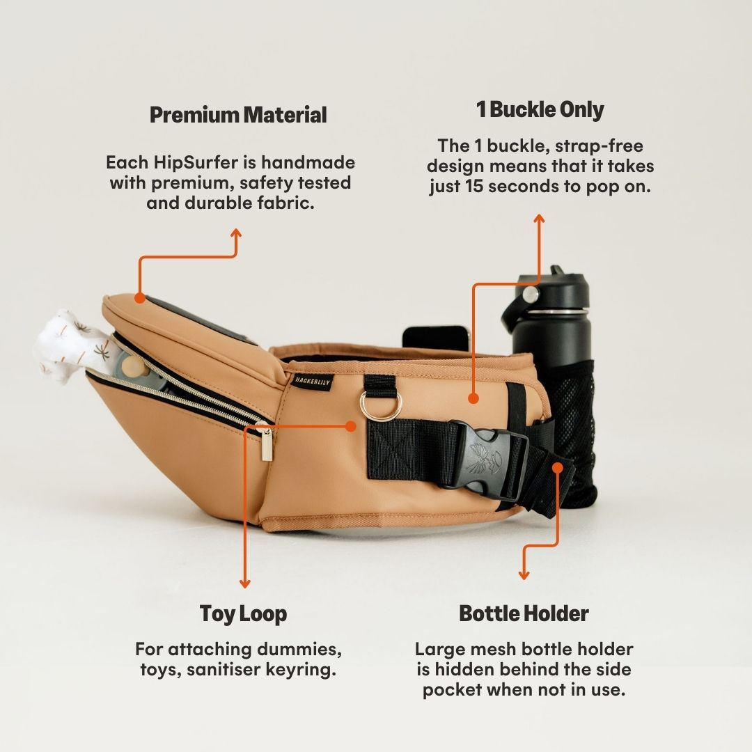 The HipSurfer is your slimline, back-saving carrier with built-in storage that goes wherever parenting takes you. Comfort, style and function - all in one.