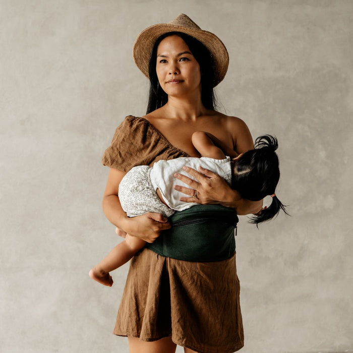 The easiest way to get things done with a baby or toddler on your hip – perfect for quick ups and downs, multitasking, and still having a hand (and head) free.