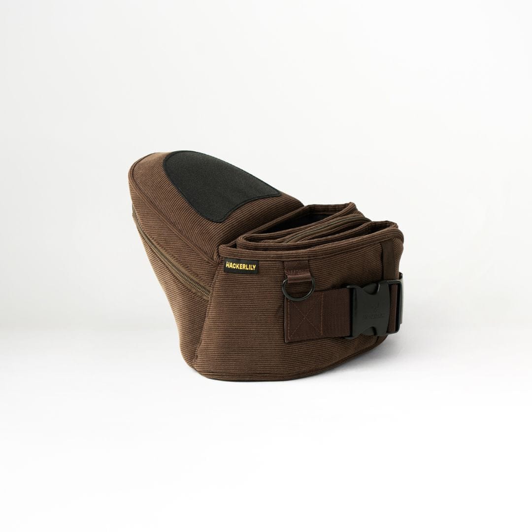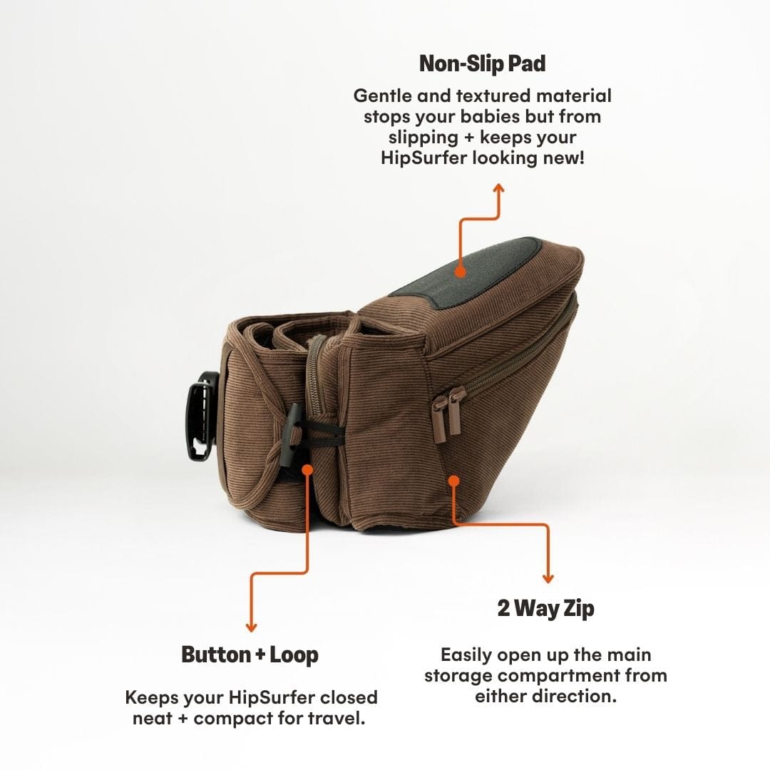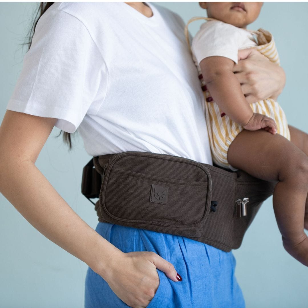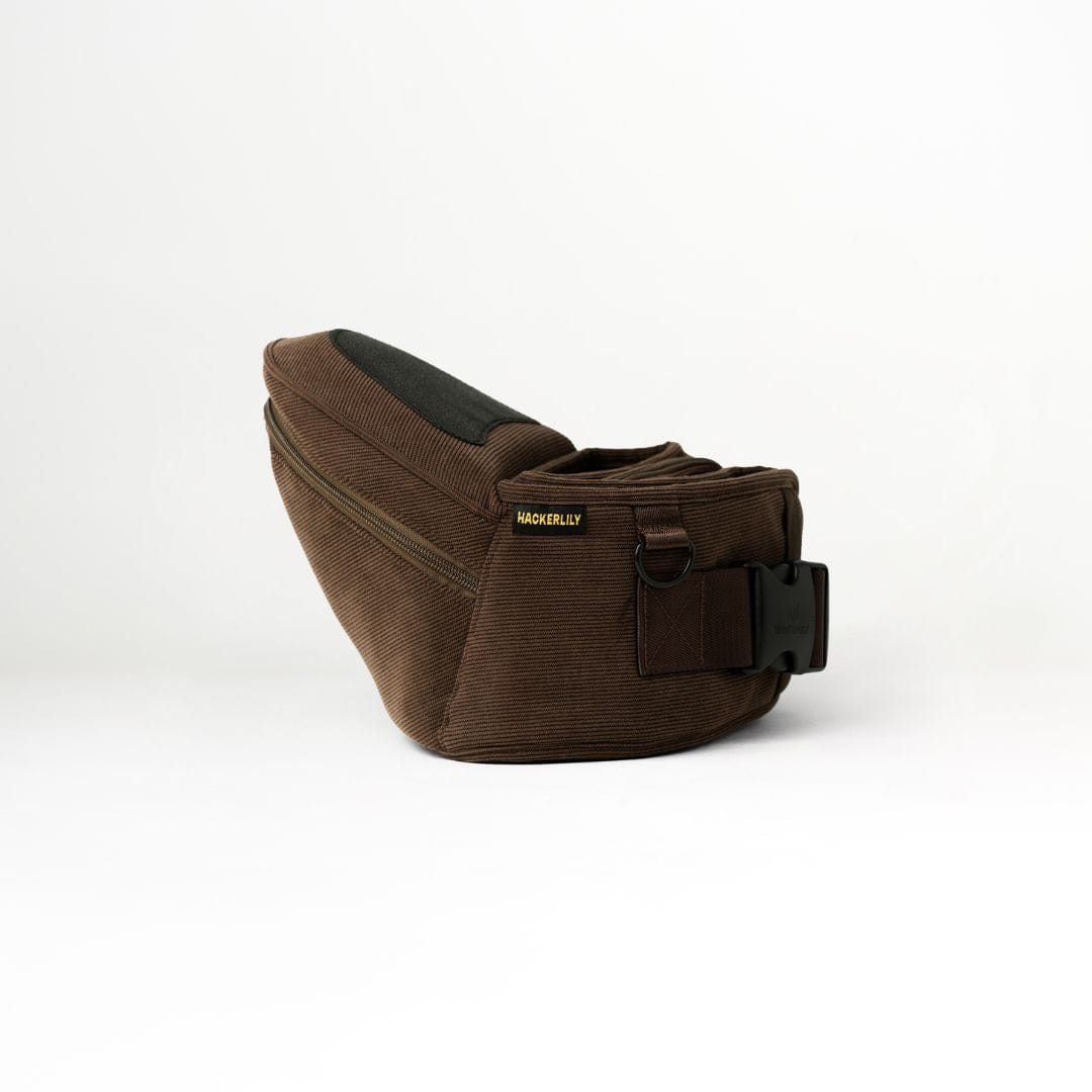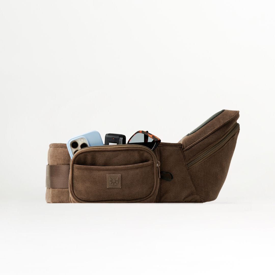 🤎 The Chocolate Corduroy HipSurfer – Our best-selling, strap-free carrier in a rich, chocolate corduroy finish. Designed to save your back, support your wrists, and look good while doing it. Stylish, supportive, and surprisingly compact – it’s the carrier that blends into your outfit, not shouts over it.