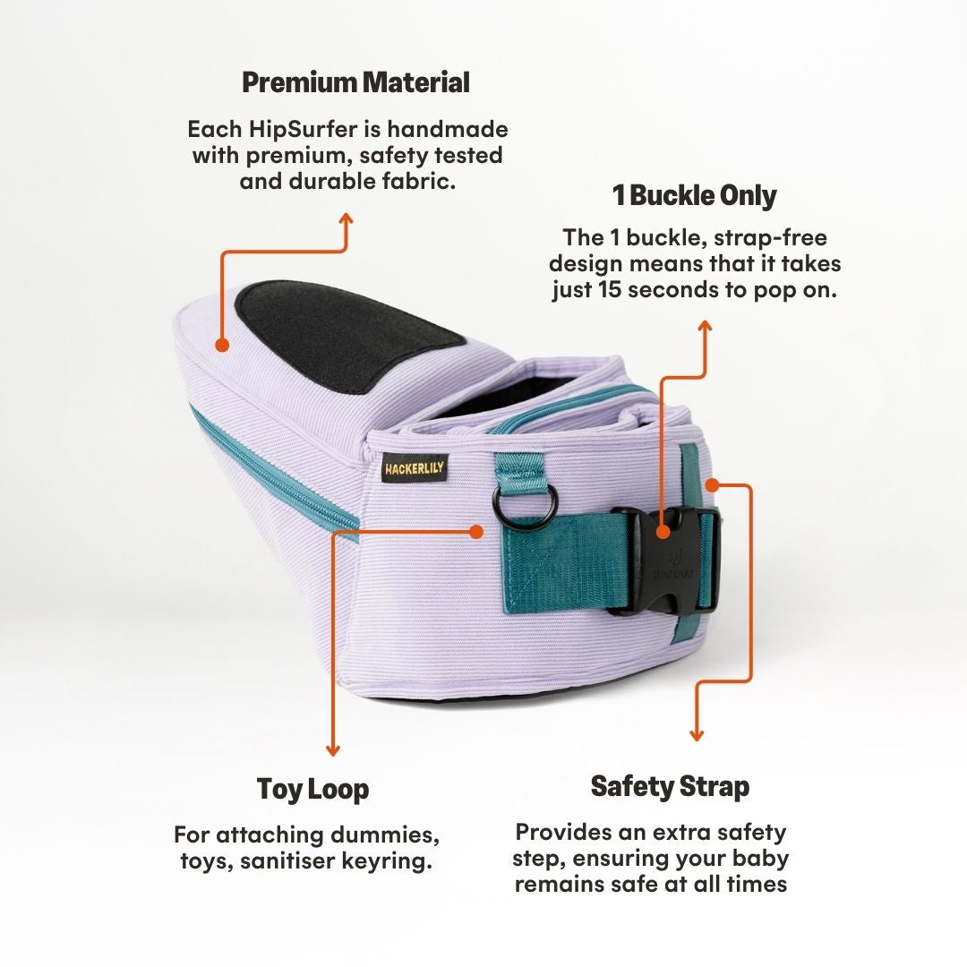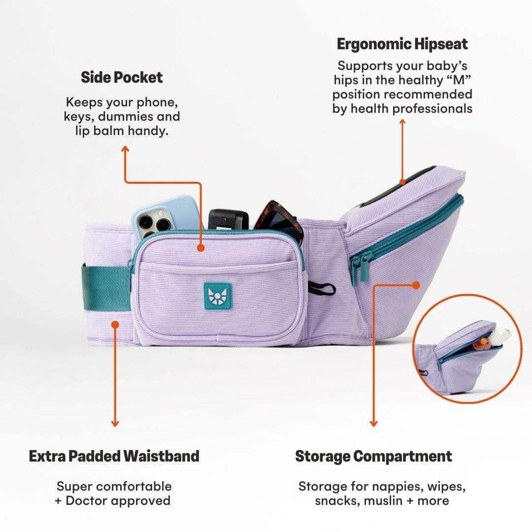 The O.G Australian-owned strap-free hipseat baby carrier and bum bag that takes the weight off your arms, shoulders and back. Built for quick ups, downs and everything in between, it’s comfy, luxurious and ready in seconds - perfect for newborns, babies and toddlers. The HipSurfer gives you the comfort of a baby carrier, the convenience of a bum bag and the freedom to carry your little one through every phase.