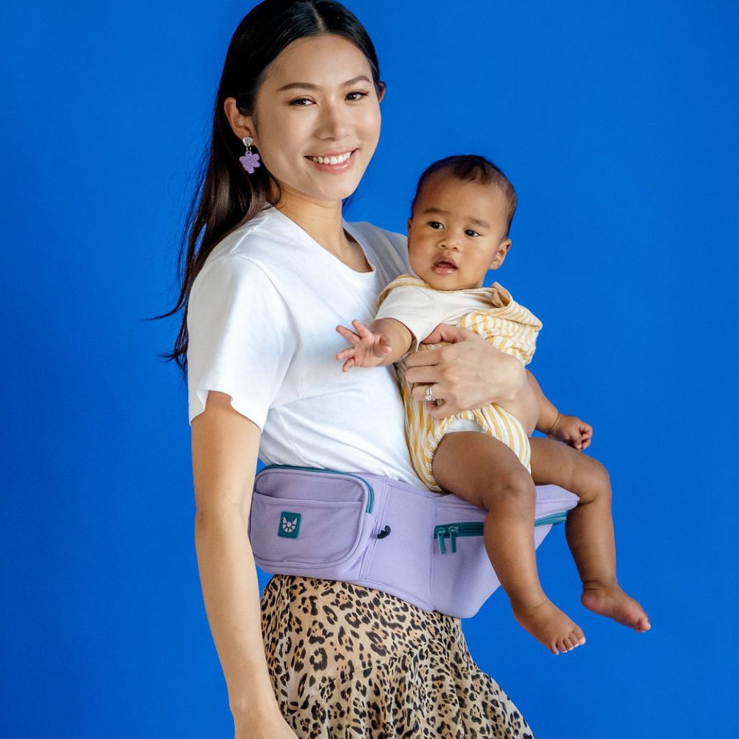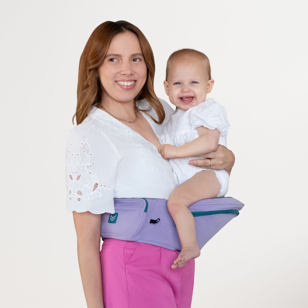 Ergonomic Hipseat – Supports your baby’s hips in the healthy “M” position recommended by health professionals. The structured seat absorbs their weight so you’re not popping out your own hip like a human shelf. Better for their development, and way better for your back.